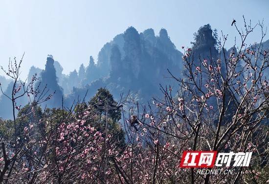 冬日的湖南张家界国家森林公园十里画廊,梅花竞相盛开,点缀着山峦峰林间,给冬日带来春天的气息隆源配资,吸引各地游客开启赏花之旅。